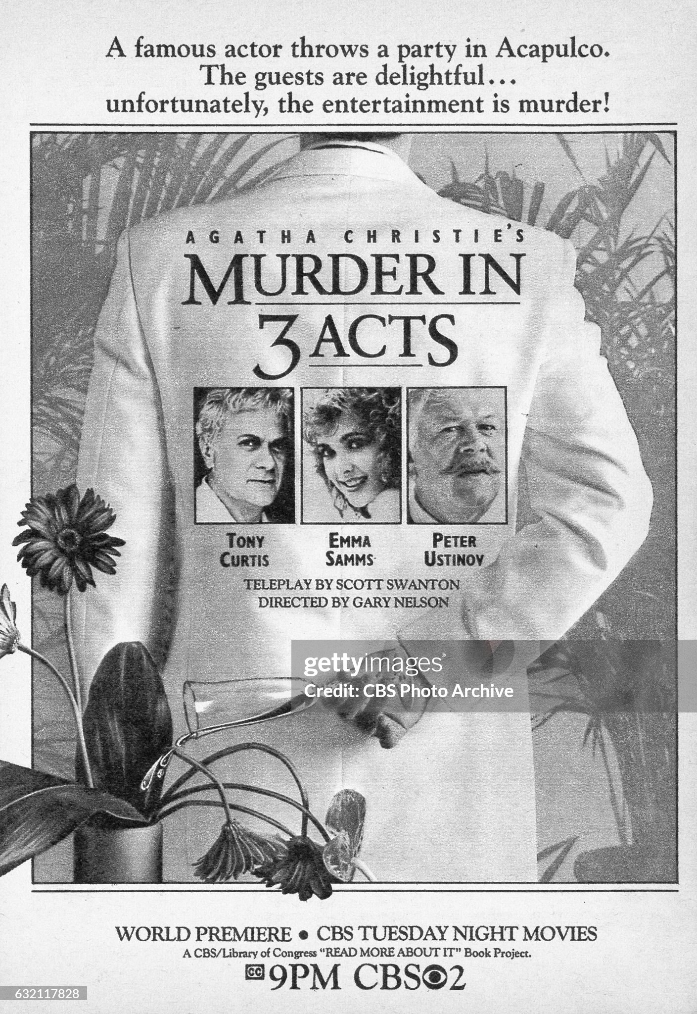 I started with "Murder in Three Acts" (1986), because it rang the softest bell.* The biggest surprise, right off the bat, is that it is set in the 1980s.
